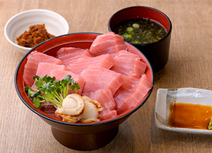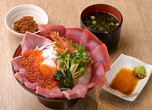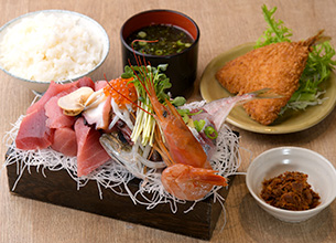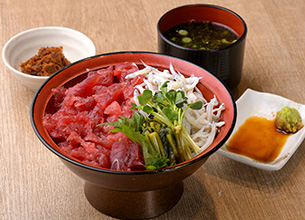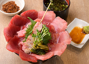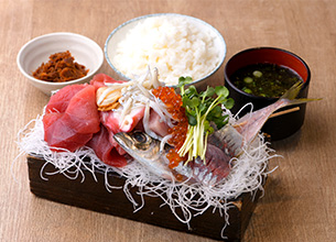 マグロと朝獲れ鮮魚がのった贅沢日替わり海鮮定食